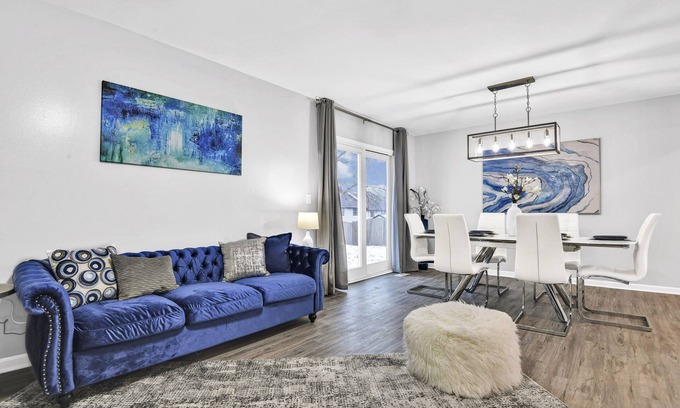 This professionally decorated townhome is the perfect choice for your visit to Kansas City. All bedrooms are upstairs. Located in Johnson County, this space is ideal for travelers and groups looking for a great location and high quality amenities in an updated space. • Gigabit Internet w/WiFi • Keyless entry • 3 Roku Smart TVs (cable tv and local channels not provided) •USB charging docks on each nightstand • Linens professionally laundered