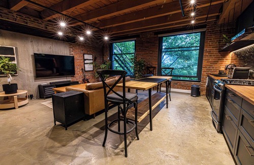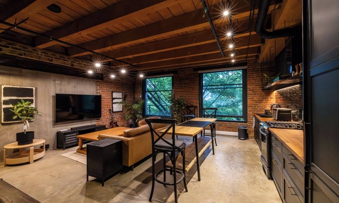 Stay in a beautifully renovated 1,200 sq. ft. designer loft in Vancouver’s iconic Koret Building. Featuring 17-ft ceilings, exposed brick, polished concrete floors, and heritage windows, the space is filled with natural light and industrial charm.