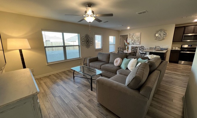 Great, New Forney neighborhood 30 minutes from DT Dallas. 3 bed, sleeps five, all standard amenities, large capacity washer/dryer, garage, full kitchen, bar stools, kitchen dinette, sectional, 70 flat panel Smart TV in living room with Free High-Speed WifI, main bedroom smart TV, many modern appointments, great neighborhood with parks and common areas, community swimming pool, clubhouse, upscale shopping nearby including Starbucks, UPS store, Bank of America, Lowes, Walmart, and many, many others. Restauraunts, car washes grocery and banks all within a 10 minute drive. Convenient freeway access and 45 minutes to DFW and Dallas Love Field, direct freeway access to Arlington Entertainment District and main hospitals on I-20 and I-30. Christa Hamburger is the owner and a licensed Texas sales agent. Depending on the platform, prices could vary due to differing fees/taxes the platform requires or charges
