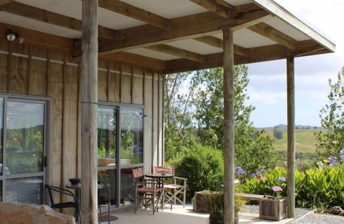 This modern looking bach is only 90 minutes north of Auckland and is an ideal place to enjoy the tranquility of the Kaipara region. Situated just ten minutes from Kaiwaka with its cafes and specialty shops, you can truly get back to nature while enjoying most of the comforts of home. We are perched on top of a hill and the resulting 280 degree views are amazing. Enjoy spectacular sunsets with uninterrupted rural views and views of the sea.