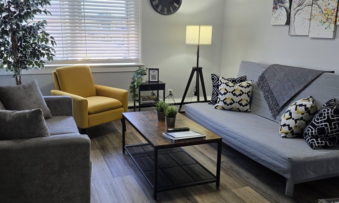Welcome to your Stylish Modern Gem in Downtown Sault Ste. Marie! This freshly renovated apartment blends modern convenience with a comfortable, stylish design. Perfect for short or long stays, whether for business or pleasure, you're steps from shops, cafes, tourist train (tour train) and the waterfront. Enjoy a bright, airy space with high-speed Wi-Fi, Smart TV, satellite TV, and a fully equipped kitchen. Ideal for a comfortable and convenient stay in the city!