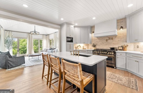 Inside, the main home boasts stylish, catalog-worthy furnishings and decor along with a well-equipped, gourmet kitchen with a suite of high-end appliances allowing you to prepare delicious meals during your stay. Dine indoors at the adjacent table - perfect for rainy day board games - or take a seat in the sunroom for an alfresco experience with a view!