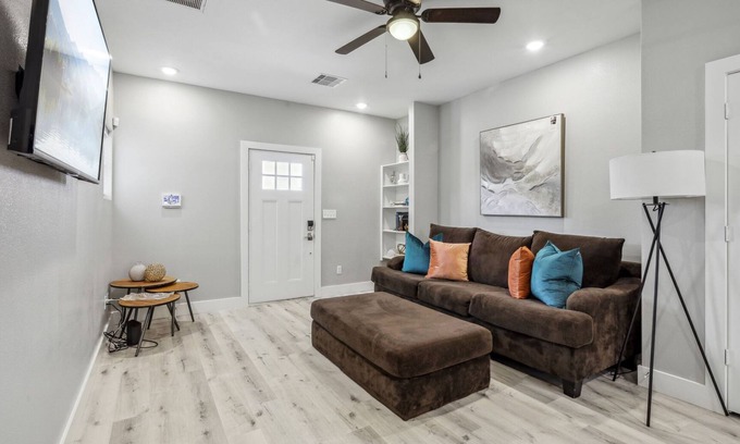Discover our family-friendly 3/2 Houston unit! Centrally located just minutes from East River, Downtown and the Texas Medical Center, our fully equipped property is perfect for families, business travelers and medical professionals. Enjoy a full kitchen, fast Wi-Fi and four 55" Roku TVs (Netflix, HBO Max, Disney+). Our prime location puts you near Houston's top attractions, including universities, NRG Stadium and the George R Brown Convention Center.