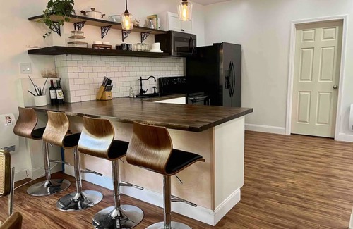 Kick back and relax in this stylish space that has been newly renovated and has a private outdoor hot tub with views of nature and a seasonal stream. Enjoy the all season activities and amenities that our community and surrounding area has to offer. We’ve made this place have all the comforts you may need during your stay. This is a garden level unit with your own entrance on our private 1/2 acre. It is a perfect place if you work from home, write, create or simply want to be amongst nature.