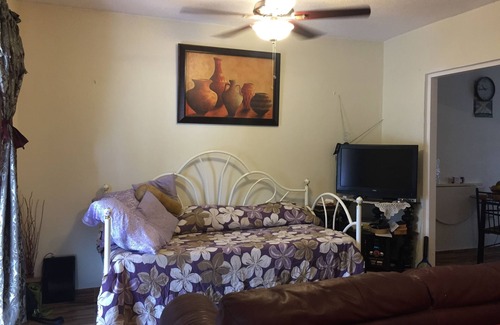 the apartment is comfortable and relaxing its a large studio with separate kitchen and bathroom, in a residential area, gated community complex 15 minutes walk to local supermarkets restaurants bus stops. 15 minutes drive to Bob Marley Museum and other places of interest 10 minutes drive to Usain Bolt's Tracks & Records Sports bar & restaurant, there's a communal laundry tokens are $210 Jamaican dollars per machine,