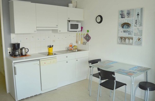 Beautiful studio located 500 meters from the city center and the port! Bright apartment located in a quiet residence in a dead end including cabin entrance with 2 bunk beds (90), living room with sofa bed, fully equipped kitchen area (dishwasher, hood, hotplates, refrigerator), balcony with garden furniture and electric barbecue. Private parking space in the residence and cellar on the ground floor with two bicycles at your disposal. Enjoy walks on the coast and afternoons at the beach!