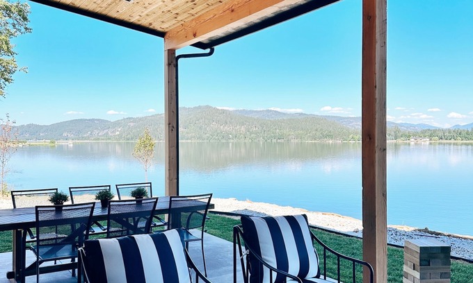 Wake up to the sunrise over the water at this one-of-a-kind riverfront getaway, just 10 minutes from Sandpoint. Thoughtfully designed with warm gold touches, fun wallpaper accents, and an airy, welcoming feel, this impeccably clean townhome offers 3 bedrooms, 3 full bathrooms, and a cozy bunk loft that sleeps 10 (up to 12 with prior approval). With a spacious lawn, private beach area, and stunning views from nearly every angle, this spot is perfect for families or anyone looking to enjoy the peaceful beauty of North Idaho.