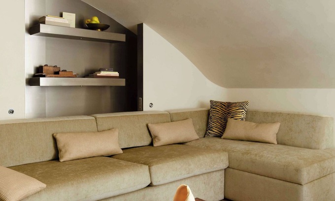 The flat is inspired by the cabins of luxury yachts (ceiling height 2m in the bedroom/kitchen area, 2.2m in the living room).