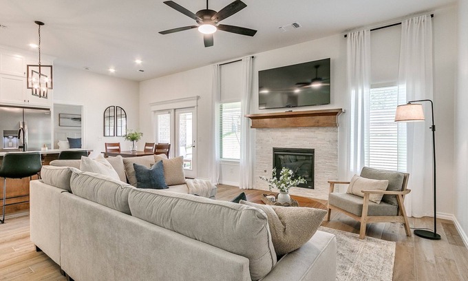 - Living Room Luxe: Center gas fireplace with stacked stone (perfect for dramatic fireside chats), Large windows (for judging the neighbors' landscaping), Ceiling fan (for those "Is it hot in here, or is it just me?" moments), and Wood-look tile (all the style, none of the splinters)