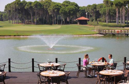 This golf hotel is surrounded by a lake and features two 18 hole championship golf courses. Located 1312 feet away from the beach, it features 3 football fields. Sueno Hotels Golf Belek’s rooms are spacious and decorated in autumn colors. Each one has a seating area with flat-screen satellite TV and plush armchairs joining up with a furnished balcony. Sueno Hotels features a full-service spa which has 8 massage rooms, a sauna and offers holistic beauty treatments. Guests can also relax in the games room and enjoy a game of billiards or table football. Sueno Hotels Golf Belek is 16 mi away from Antalya International Airport.