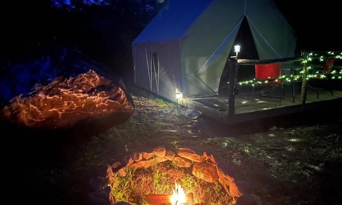 Get ready to relax in this superb 1-bedroom off-grid glamping tent in Saint Johnsbury. Comfortably sleeps 2 guests with a king bed includes all linens, your own charcoal grill, firepit and beautiful views. A superb feature is you are able to park at your site and walk to the Basecamp lodge which serves as guests common area includes two bathrooms, full kitchen access, TV, WIFI, Desk Workspace, refrigerator to store your food. We also include a gift shop where we sell custom T-shirts, Custom made cutting boards, fresh maple syrup, Ice, Firewood, Firestarter. The common lounge is located adjacent to Sugar Brook tent allowing your full privacy with the convenience of close proximity for restrooms etc. This is a must for anyone looking to experience hiking our many trails and really immersing in all glamping has to offer so come unwind in this marvelous retreat and experience the magic of Saint Johnsbury. Our guide book will share many interesting locations to visit during your stay.