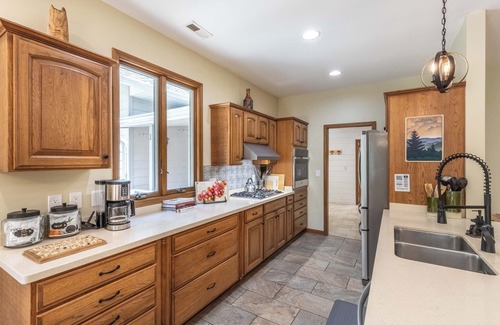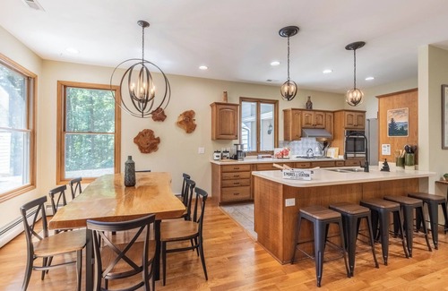 The interior is thoughtfully designed with your utmost comfort in mind. A fully equipped kitchen stands ready to fulfill your culinary desires, while the inviting living room, graced by a gas fireplace and smart TV, beckons for cozy evenings with loved ones. The expansive dining room sets the stage for memorable gatherings, and an array of board games guarantees endless entertainment. Stay seamlessly connected with great WiFi, allowing you to remain in touch with the world or simply share your vacation moments.