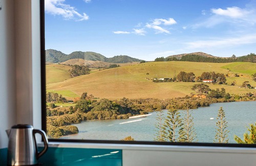 This house is great for a group or two families. Lower level has a separate bathroom and beds for 4 guests. Upstairs has two queen bedrooms, bathroom, living and kitchen. Full of comforts with great indoor/outdoor living by way of large bifold doors where you can kick back on the spacious deck to enjoy the views of the Harbour or Hihi beach. Throw a sizzler on the BBQ and enjoy the sun going down over a cool drink.