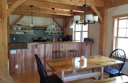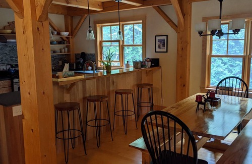 Beautifully crafted, timber-frame house (constructed in 2014) offers year-round enjoyment. Sitting atop Chase Brook, the house is privately tucked away off of Mt. Ellen Access Rd, providing great privacy, but also convenient access to the best skiing/snowboarding in the Valley. Mt. Ellen is a quick quarter of a mile up the road, while Lincoln Peak (Sugarbush base) and Mad River Glen are both 3 miles away! Best of all the Mad River Bus can be caught at the end of the driveway taking you to either Sugarbush peaks. Aside from skiing, a network of trails for cross country skiing and snow shoeing in the winter or hiking and mountain biking in the summer, can be accessed just across Chase Brook. Those trails include the Mad River and Catamount Trails.