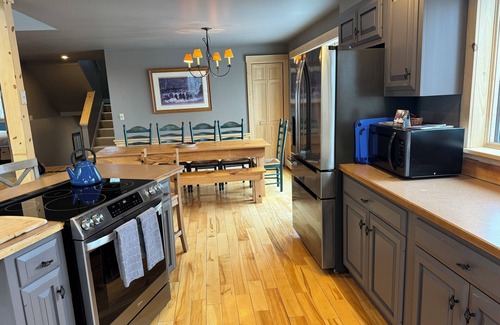 Winter Wonderland:Step outside and hit the trails with walkable access to Sugarloaf’s slopes, ski home via a private glade, or hop on the convenient shuttle at the end of the driveway. After a day on the mountain, cozy up by the wood-burning fireplace, relax in the warm, welcoming living spaces, and enjoy après-ski gatherings in comfort and style.