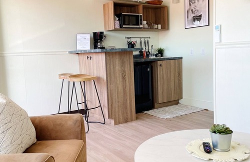 This is a 1 bedroom / 1 bath suite located at "The Ash," a vintage motel renovated into an eclectic and modern mix of vacation rentals.