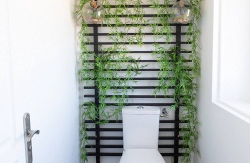 Bathrooms are equipped with a shower, toilets, a sink and a washer dryer