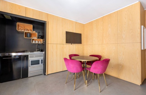 Accessible to people with reduced mobility, this is our largest apartment. It offers a wide living area with a 2 persons sofa bed. Thanks to its best-in-class equipment (Air Conditioning, floor heating, tailor-made arrangements), this suite is ideal for a peaceful stay in the heart of Lille.