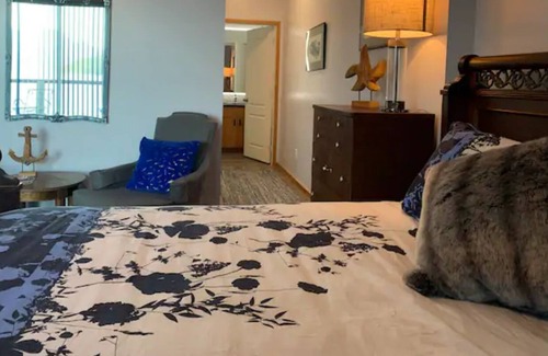 Very clean and has the basics keurig, kettle , microwave and a mini fridge with a small freezer , breakfast will be served but bring your own food and drinks for your fridge or you can walk 5- 10 minutes to the cove restaurant or a short drive to some pretty cool restaurants or pubs ,