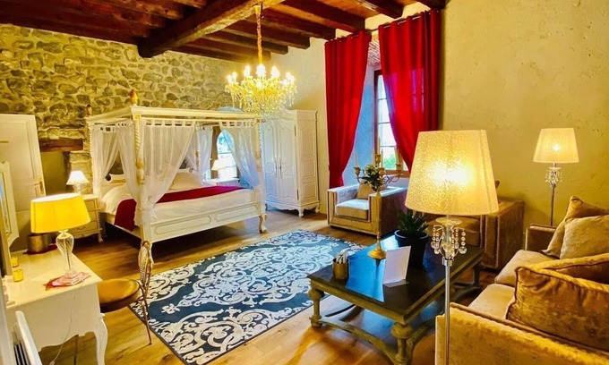 Suite Royale Dans un Château has 1 Bedroom , 1 Bathroom, and max occupancy of 2 people. The minimum rental for this property is 1 nights, but this can change depending on the season you plan on staying. Previous guests have given good rated it, and VRBO labeled it a top-rated Bed & Breakfast because of the excellent services rendered by the owner or manager of this Bed & Breakfast, and has consistently provided great experiences for their guests. Most families or guests that use it recommend it to their friends and some of them are repeat guests. Bed & Breakfast has a friendly neighborhood, and the Cruet has interesting places to visit. If you want to learn more about the Bed & Breakfast in Cruet, such as places to visit and things to do nearby, you can check below to learn more.