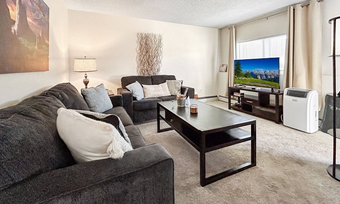 Experience comfort with two portable air conditioners— one in the living room and another in the master bedroom. Nestled at 7,500 ft high in dry Colorado Springs, humidity concerns fade away. Our suggestion: stay hydrated, as the altitude at 7,500 ft can be eased with plenty of water.