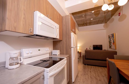 Le Central is located in the city-center of Rouyn-Noranda, directly on rue Gamble Ouest andclose to shops and restaurants.These 11 studio apartments are located directly on rue Gamble Ouest in Rouyn-Noranda, near shopping and restaurants. The units stand out thanks to a refined industrial style that’s sure to impress. Enjoy a convenient service combined with good taste, comfort and modernity.