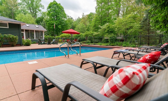 The spacious pool has 6 lounge chairs, 2 tables with umbrellas & seating for 12, space for games like corn hole, mega jenga, etc. It's an easy 13 min walk or 3 min bike ride to the beach. Escape from the sun or rain in the game room w/ ping pong, air hockey, foosball & more. At night, relax in the hot tub or by the 2 gas fire pits. Plus, 2 screened in porches for eating & lounging! Close to beaches like Warren Dunes State Park, Weko Beach, Silver Beach and many others. With so many local attractions, restaurants, wineries, breweries and more, you are sure to find something suitable for a ladies getaway, friends outing, gentlemen’s weekend or entire family gathering!