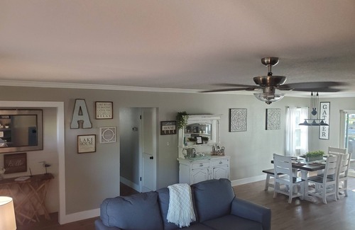 Rustic lake house design, open concept living space, deck, and firepit. Come relax in our quite neighborhood. Eustis and the surrounding area is home to many small town America festivals and events including First Fridays, Georgefest (President's day) Mt. Dora Art festival and Leesburg Bike Fest (only 8 miles from Gator Harley) If golf is your game hit the links on one of the many Championship courses in The Villages (30 minute drive)