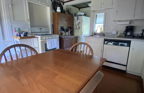 A 4 bedroom summer cottage with beautiful water views from every room. The eat-in kitchen has an induction stove, microwave, refrigerator, toaster, coffee maker, and dishwasher. Off the kitchen is a small porch, there is a Weber grill for charcoal grilling available.