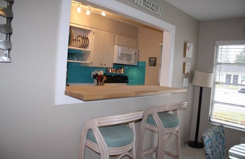 Don't Miss this Unique Opportunity to Rent Just Minutes from the White Sandy Beaches of Sparkling Siesta Key! Freshly updated in Feb 2025 this adorable condo is spacious and quiet. The Angelfish is located just minutes from either the north or south bridges to Siesta Key and its sugar white sands, (equidistant to bridges and beach 6.5 miles). Need more time for home to go to closing? Are you having major renovation done or roof repair or fire, flood or hurricane damage, come stay at this fully furnished condo unit. This ground floor, 1 bedroom/1 bath condominium is beautifully decorated with both modern contemporary and beach style furniture. The Living room has plenty of room to relax with wireless internet for your enjoyment and entertainment. The dining area has been freshened as well with a bamboo table and 4 upholstered dining chairs with a butcher block bar/pass through for additional guests. There is a stove, refrigerator, and small pantry with a coffee station and Keurig Coffee maker as well! This kitchen is stocked with everything you need (counter-top dishwasher, microwave, and more) to enjoy a family meal. The bedroom has been freshened up as well with a brand-new Serta Queen Size mattress and new upholstered bed and linens. The bathroom was completely done with new tile bath walls, rain head shower and rinsing wand with bead board walls and navy vanity for a more nautical look. There are 2 (two) designated parking spots in front of the condo. When you spend time inside the studio - especially great on rainy days - you'll have full access to my all-time favorite books, games, movies, and access to tons of sports and entertainment channels via Roku service and extra fast Wi-Fi for work/play on your computers/phones. There are several USB and USBC plugs to charge your electronic devices. If you're a beach person Siesta Key Beach is located only 10 – 15 minutes from the Angelfish. Siesta Key beach has been voted #1 beach in the US (including the Hawaiian Islands) because the sand is made from finely ground Quartz crystals it never gets hot! You can also ride bikes on the beach 365 days a year. The Angelfish comes with quality linens, towels, bath robes so much more that you will never want to go home. The clear aqua blue water of Siesta Key Beach stretches out on a shelf into the Gulf of Mexico, inviting long, easy walks into the water before you stretch out for a swim. Siesta Key beach with is powder white sand is a rare find; just a quick 10 min. car ride or 25-minute bike ride. The extraordinary, bright white sand is almost completely quartz crystal. This beach is great for walking, shelling on the 8-mile-long white sand beach or enjoying the Drum Circle on the weekend at sunset. COMMON AREAS: Common areas must be kept clear and clean - this includes the pool area. BEACH STUFF: We have everything, so you don't need to bring anything - beach chairs, towels, umbrella, mini-Cabana, beach wagon. SWIMMING POOL: The water quality itself is what will make this one of the most exhilarating and invigorating swims you'll ever have! The pool is not heated but can be used at any time from Sunrise to Sunset. Guests are allowed but you must accompany them. Please make sure to rinse all lotions/oils from their bodies prior to entering the pool. Yes, there is coin washer and dryer at the end of each building with door code provided, there are nearby drop-off laundry services as well.