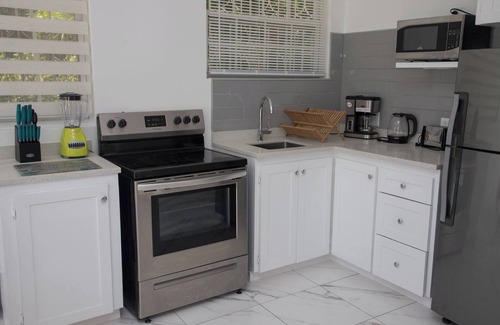 Each of the two cosy bedrooms is a haven of tranquility, furnished with comfortable bedding and adorned with local artwork that adds a touch of Caribbean flair. The bedrooms boast ample natural light and are equipped with air conditioning to ensure a restful night's sleep.