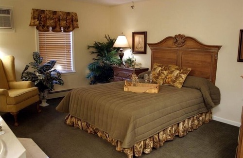 Suites feature a separate spacious bedroom with King size bed, whirlpool jacuzzi bath and vanity; iiving room with a fireplace, sleep sofa, cable TV with DVD player and convenience kitchen including a refrigerator and microwave.
