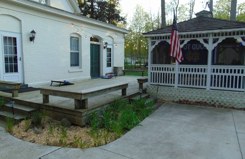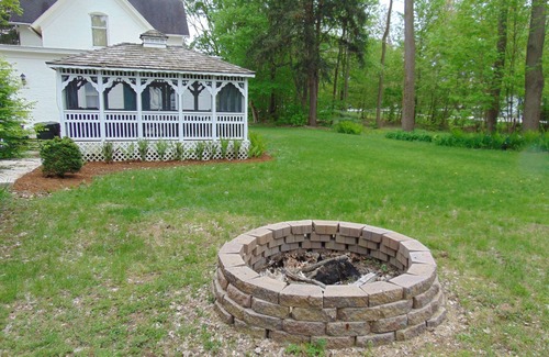 Great for football or summer group! Welcome to the most space for up to 10 guests and seven comfortable beds and THREE newly renovated FULL bathrooms. Very convenient to the Notre Dame campus (5.4 miles). ND football tickets may be available - see below. Stately, all brick, registered historic home on 2 acres. Fabulous screened-in gazebo and large deck for eating or just hanging out and overlooking a huge fire pit! With many trees all around, yet with enough open areas, this home offers privacy and space for your family or group. Perfect for an extended family or multiple family groups when getting together to support the Irish or a family reunion this summer. Four large bedrooms (with TWO large master ENSUITES - one downstairs) and common spaces when you need 'elbow room' to relax. Plenty of room - rain or shine, 3500+ sq. ft. of 1st and 2nd floor area. Again for football season 2025 - Hulu Live, which includes ESPN and all the sports channels. Since 2019, in addition to the third full bath, there are new appliances, new upholstered furniture and upgraded WiFi! Please note that as a result of many returning guests who book directly, there are fewer new reviews - once you come, you will see why! There are ND football tickets available, with options starting now! Tickets do require a reservation adjustment. Please indicate your preference and I'll provide details.