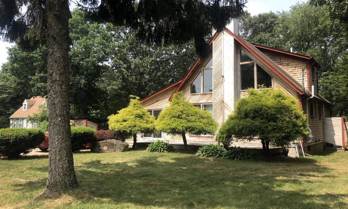 Our 5-day minimum booking, Charlestown beach home is only a few miles from Charlestown Beach. It has a large yard, with an outdoor shower, lots of sunshine, cathedral ceilings, and huge windows, making this a bright and cheerful summer stay. The spacious decks include a sizeable roofed pergola, accommodating rainy days. We are conveniently located off of Route 1 and has easy access to fun Rhode Island activities. ONLY 2.2 miles to Charlestown Beach by bike! 10-15 minutes to Matunuck beach, Wakefield shopping, and Narragansett Beach, 15 minutes to Westerly Beaches and downtown.