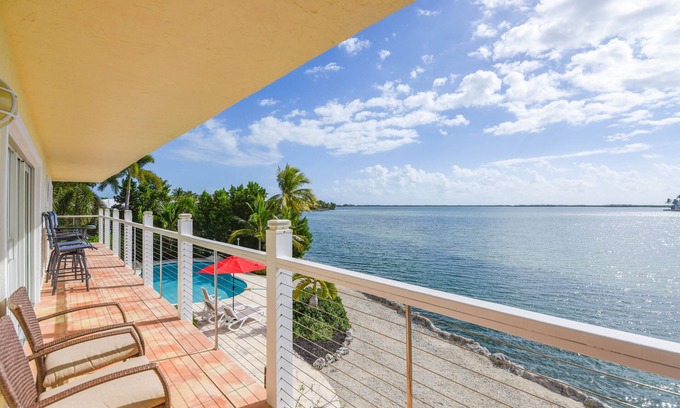 This property is subject to Monroe County 28 day rental, so short term rentals cannot be taken. If you can stay longer... This one has it all! Gorgeous sunsets where aqua water surrounds the pie shaped property, Impeccable maintained home with 3 Bedrooms ( king, queen and queen beds), 2 full Bathrooms, family room, dining room and kitchen up ( second floor), Bedroom ( king) , Bath , family room #2 kitchen #2 and Bonus room on first floor. Heated pool, tiki hut, boat dock, deep water canal on one side and open bay on the other side. Miles of biking/walking trails , the infamous "jumping bridge" all located on this quite Sugarloaf Key in Monroe County.