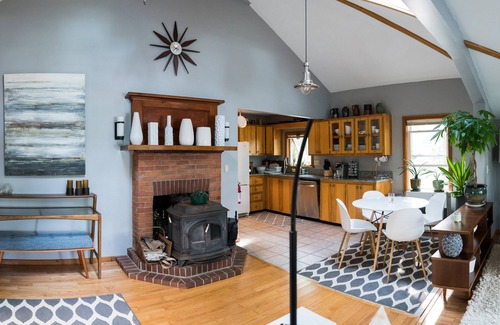 There is a bright and airy dining and living room with a 180-degree view of the lake and the great outdoors. We provide a canoe, a gas grill for outdoor cooking, and everything you'll need for your getaway, including linen and towels. Just bring yourself and food.
