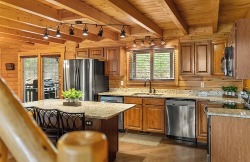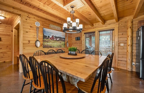 - Bedroom 1: One-of-a-kind bunk room with custom-built log triple bunk beds. Kids love this room, and it works for adults, too.