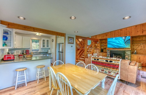 Escape to a haven of tranquility nestled in the heart of nature's embrace. Our modern rustic cabin offers the perfect blend of contemporary comfort and timeless charm. Wake up to the sight of sun-kissed mountains and the gentle rustle of leaves, as you sip your morning coffee on the private deck. The well-appointed kitchen invites culinary adventures, while the spacious living area beckons for cozy gatherings around the fireplace. Retreat to the snug bedrooms for a restful night's sleep, enveloped in the warmth of natural wood and plush linens. Experience the serenity of your own piece of paradise – a true getaway for the soul. Book now and let nature's embrace welcome you home.