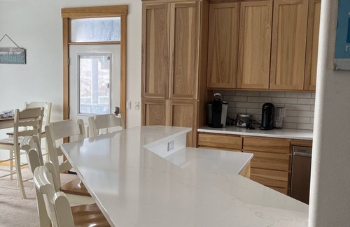 Step inside this home and discover an unexpectedly spacious living space with open floor plans, contemporary finishes, and central air conditioning to provide comfort in the summer. Curl up by the gas fireplace inside or the gas fire pit on the back deck to read the newspaper on the free WiFi. Watch a few highlights on the 50-inch Smart TV's located throughout the home (all streaming-ready). Enjoy the ease of making meals in the kitchen that has stainless steel appliances (including a dishwasher) and is stocked with basic cooking essentials, including salt, pepper, oil, condiments, and spices. The home also has a private washer/dryer for your convenience. There are 2 large living spaces, TV's throughout the home, 2 full bathrooms, 4 total bedrooms (2 bedrooms with queen beds, 1 bedroom with a queen and full size bed, and a bunk room with 2 full-size/twin bunk beds). Your family or group will have plenty of space to be comfortable.