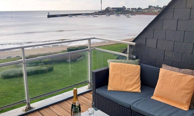Sun-drenched duplex with terrace overlooking the sea is located in Saint-Jacques. Sun-drenched duplex with terrace overlooking the sea provides accommodation, featuring Bedding/Linens, Fireplace/Heating, Child Friendly, among other amenities. This Apartment features Bedding/Linens, Fireplace/Heating, Child Friendly, to make your stay a comfortable one.