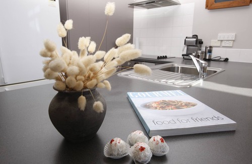 Bathroom has a shower, vanity, heater and extractor fan. Separate toilet with hand basin. Kitchen provides all amenities, including dishwasher, large fridge / freezer, microwave, washing machine. Coffee machine and coffee grinder for your use. Heat pump installed for cold winter days. TV and freeview along with DVD player provided.