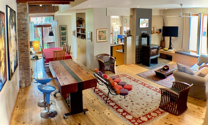 This is our own home that we enjoy renting out to guests who want to experience Montreal as locals. Our house is 175 years old and used to be a corner store (dépanneur). We renovated it in 1998-99. We added an induction stovetop and heat pump system in 2024 to keep the house perfectly climatized in summer and winter. The architects did a fabulous job creating a space full of light, warmth and soul. We love living here and we love sharing our home with out-of-town guests when we ourselves head out of town.