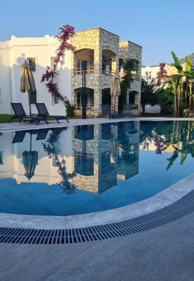 Offering garden views, Sun Garden Apart Hotel in Yalıkavak features accommodations, a seasonal outdoor swimming pool, a garden, barbecue facilities, and a shared lounge. There's a private entrance at the condo hotel for the convenience of those who stay. The condo hotel offers rooms with air conditioning, free private parking, and free Wifi. The condo hotel provides guests with a terrace, mountain views, a seating area, satellite flat-screen TV, a fully equipped kitchen with a dishwasher and a microwave, and a private bathroom with walk-in shower and a hair dryer. A balcony with an outdoor dining area and pool views is offered in each unit. At the condo hotel, the units include bed linen and towels. A continental breakfast, comprising juice and cheese is served at the property. A car rental service is available at Sun Garden Apart Hotel. Yalikavak Public Beach is 1.1 miles from the accommodation, while Bodrum Marina Yacht Club is 11 miles away. Milas-Bodrum Airport is 37 miles from the property, and the property offers a paid airport shuttle service.