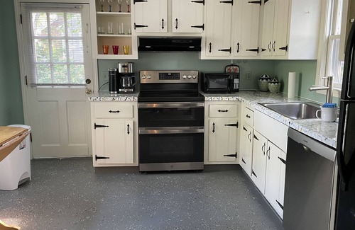 Enjoy the beauty of old Cape Cod on this unique one of a kind Cape & a half on a quiet tree lined residential street. The house is well hidden with a beautiful large pine tree as well as many rhododendrons. Central Air is provided. Close to Cape Cod Rail Trail, several beaches 5-10 mintes drive or a 15-20 minute bike ride to many beaches both ocean, freshwater and pond. Enjoy cooking meals with your friends and family in a well equipped kitchen featuring new electric stove/double convection oven with an air fryer! Bosch dishwasher. All the pots and pans, silverware, coffee mugs etc… you need are provided.