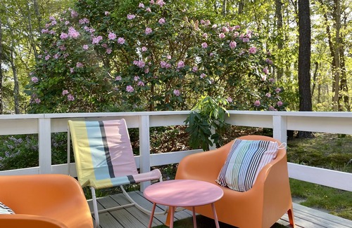 Enjoy birdsong on the outdoor porch with table, chairs and barbecue grill. Perfect for a morning cup of your favorite beverage as well!