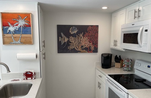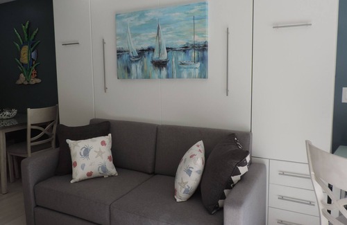 This newly remodeled studio at Coral Beach is only steps from the ocean. Head to the beach from our walk-out ground floor patio. Onsite pool, restaurant & bar. This studio is perfect for 2-3 adults or 2 adults & 1-2 children. There is 1 queen size murphy bed w/ custom mattress and 1 queen size pull out sofa. Bathroom area has a separate sink for getting ready as well as a full bathroom with another sink & huge shower with safety seat. Located at Coral Beach 1115, Freeport, Grand Bahama. Gated complex has 24 hour security and fabulous beach. If you traveling with small children, a pack n play, stroller & highchair are provided in condo. A washer/ dryer is also in the condo for your convenience.