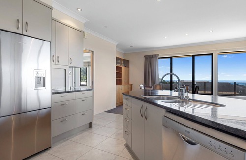 This spacious, family-friendly retreat at the sought-after north end of Waihi Beach is the perfect destination for your next Kiwi summer escape. Step out onto the elevated deck, fire up the BBQ, and soak in the spectacular views as you dine and relax in the fresh sea air.