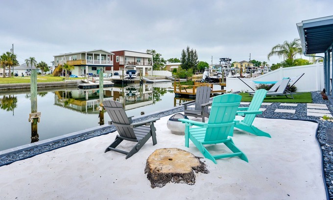 A rejuvenating vacation in Florida awaits at this sunny Hudson home. The 2-bedroom, 1-bathroom vacation rental, located within walking distance from the beach, features a welcoming interior, a dock, and a well-appointed outdoor space — right on the canal! After hitting the greens or trying the catch of the day at a local eatery, gather around the fire pit with a tropical cocktail. Other property highlights include at-home laundry, free WiFi, a Smart TV, a fully equipped kitchen, and central A/C.