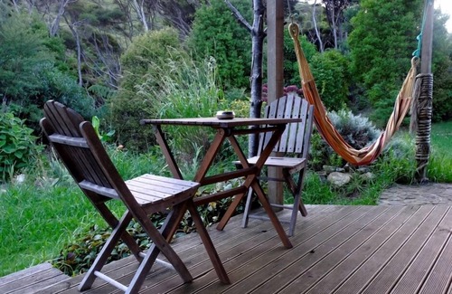The bathroom is separate ablution area with guests own toilet & shower / shared laundry and seperate shared kitchen and dining area with covered outdoor deck, BBQ and furniture. ( with Garden Cabin)