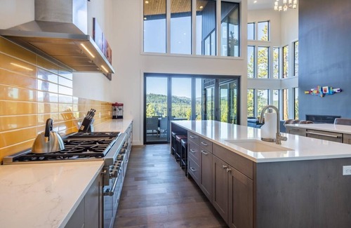Welcome to this beautiful seven- bedroom mountain home with stunning views. This home is located steps away from The Lodge at Suncadia and showcases the same spectacular panoramic river valley and mountain view! This spacious retreat features an open floor plan with luxurious finishes throughout the home. The dining table comfortably seats six with additional seating for six at each of the two kitchen islands. The kitchen features high-end stainless-steel appliances making this a convenient home away from home. The spacious great room is perfect for relaxing in front of the floor-to-ceiling fireplace or enjoying a family movie.Step outside and enjoy the large patio with its breath-taking mountain view and featuring must-have amenities including a built-in gas BBQ, dining table, hot tub, and fire pit completing this perfect mountain lodging experience.Sleeps: 18.Home features 7 bedrooms and 6 bathroomsBedding: 6 king and 2 twin-over-full with trundle bunkSquare feet: 4,003The master bedroom is on the main floor with a king-size bed, TV, and ensuite bathroom with walk-in shower and double sink vanity.The second bedroom is on the main floor with a king-size bed and ensuite bathroom with walk-in shower.The third bedroom is also on the main floor and features a king-size bed.The fourth bedroom is the 2nd master suite located on the second floor and features a king-size bed and ensuite bathroom with shower and separate soaking tub.The fifth bedroom is on the second floor and features two twin-over-full bunk beds with trundles. This bedroom sleeps six comfortably and also includes an ensuite bathroom featuring a walk-in shower.The sixth and seventh bedrooms are also located on the second floor and feature king-size beds. These two bedrooms share a hall bathroom that features a walk-in shower.There is an additional shared full bath with walk-in shower on the main floor.Additional Amenities:Air conditioningHigh-speed internetLaundry room with full-size washer and dryerPrivate hot tubPrivate firepitNo pets